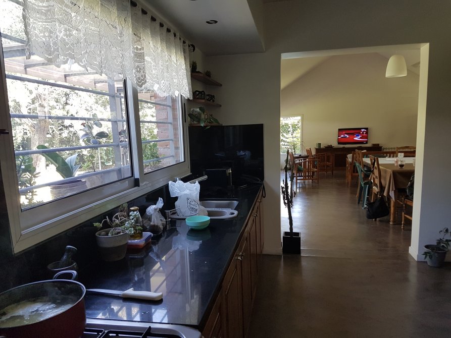 La cocina, con vistas al jardín, cuenta con un práctico lavadero y un baño completo. Los